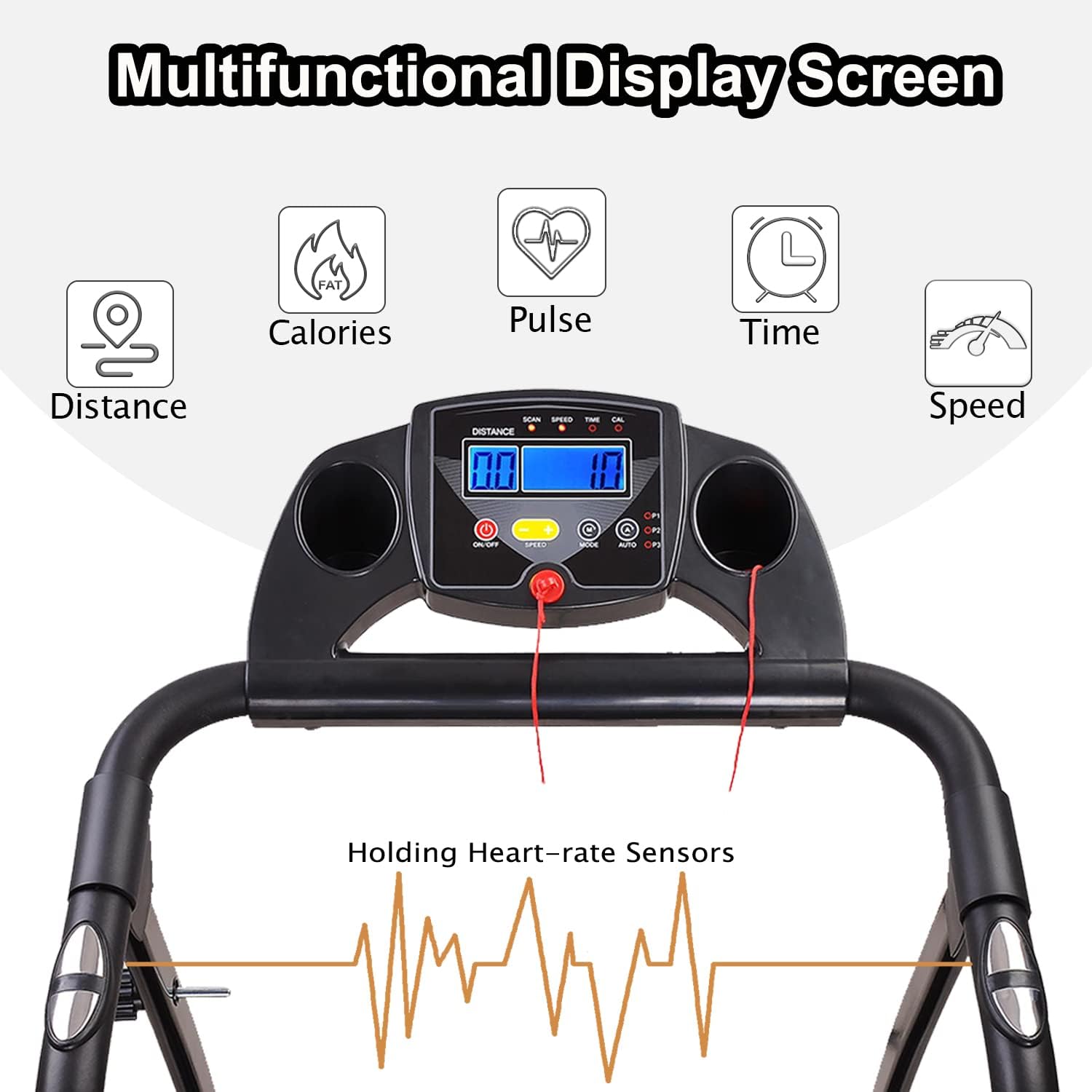 Modern Folding Treadmills for Home, Foldable Electric Treadmill with LCD Display, Lightweight Compact Treadmill Fitness Running Walking Jogging Exercise for Home Office Apartment Saver Space