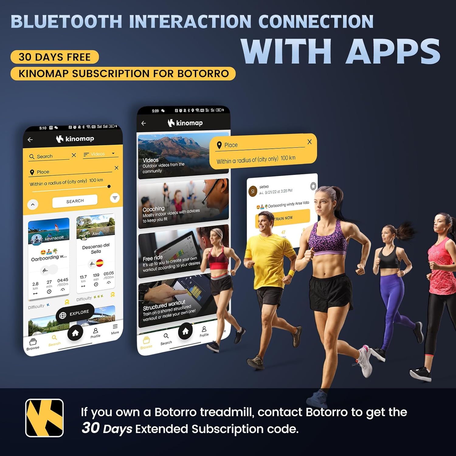 BOTORRO R5 Foldable Treadmill, 265Lbs Load | R7 Treadmill for Home with Incline 18 Levels, 300Lbs Capacity Treadmill, LED Touching Screen with Bluetooth and 18 Programs, 30 Days Free Kinomap