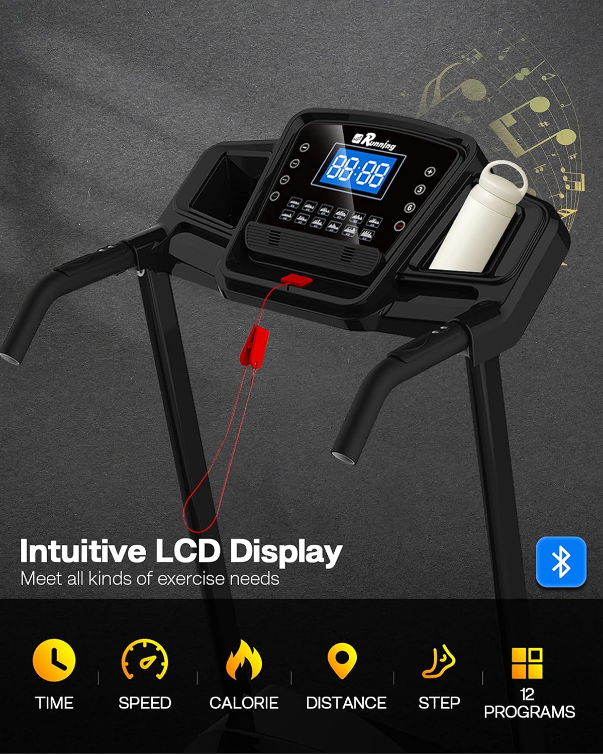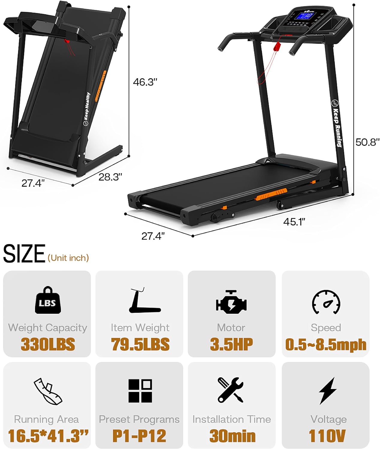 Foldable Treadmill with Incline, Folding Treadmill for Home Electric Treadmill Workout Running Machine, Handrail Controls Speed, Pulse Monitor,APP