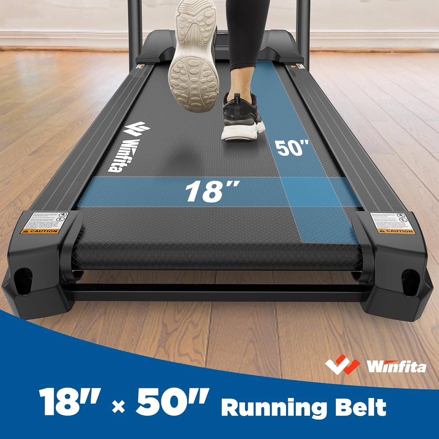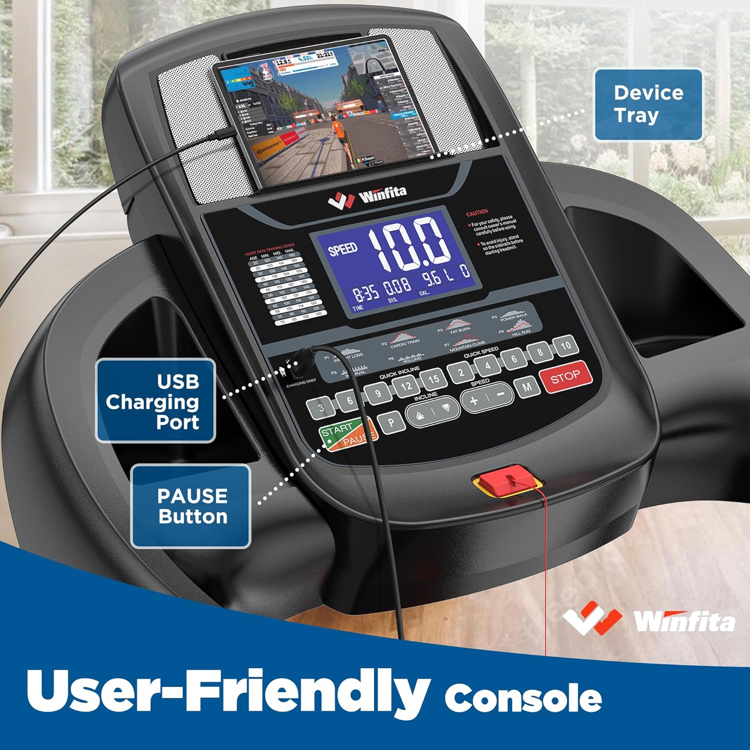 Winfita Foldable Treadmill with 15% Auto Incline, 10 MPH, 300 LB Capacity, Bluetooth & APP, Pause Function, USB Charging, Tablet Holder, 68 Programs Running Machine for Home